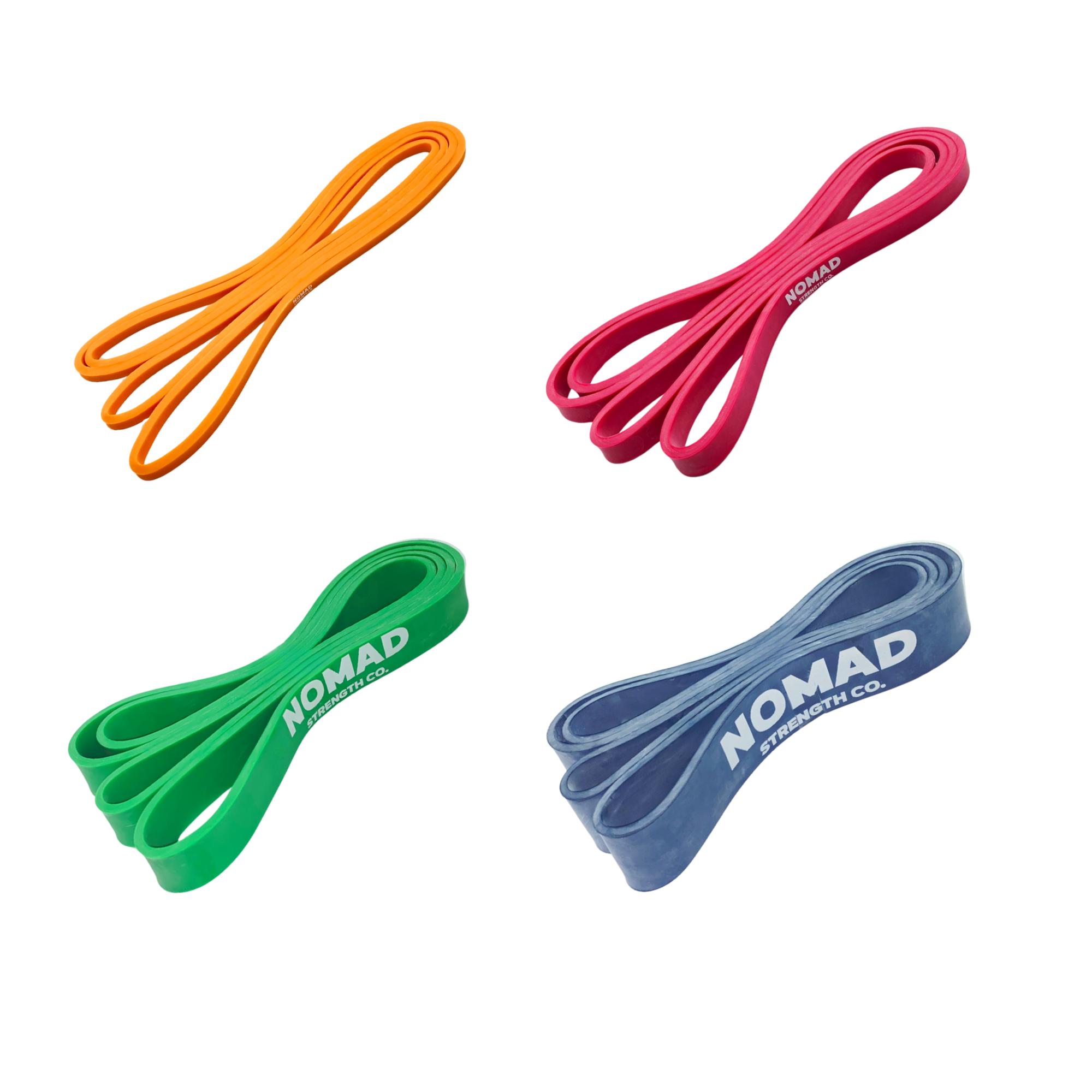 Nomad Power Bands Available for purchase individually Nomad Kuwait , it's your go-to solution for versatile resistance training—from enhancing mobility routines and assisting with pull-ups to boosting your squats and bench presses. Select from (4) unique color-coded options, each meticulously crafted from high-quality natural latex. Although all bands maintain a uniform length, they vary in width, thickness, and resistance, enabling you to customize your training regimen.